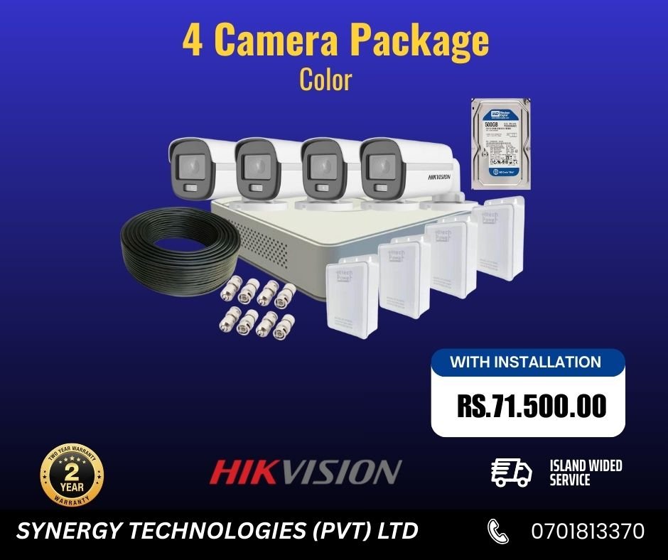 - DS-2CE10DF0T-PFS Hikvision (Colour/Night) 4 Cameras