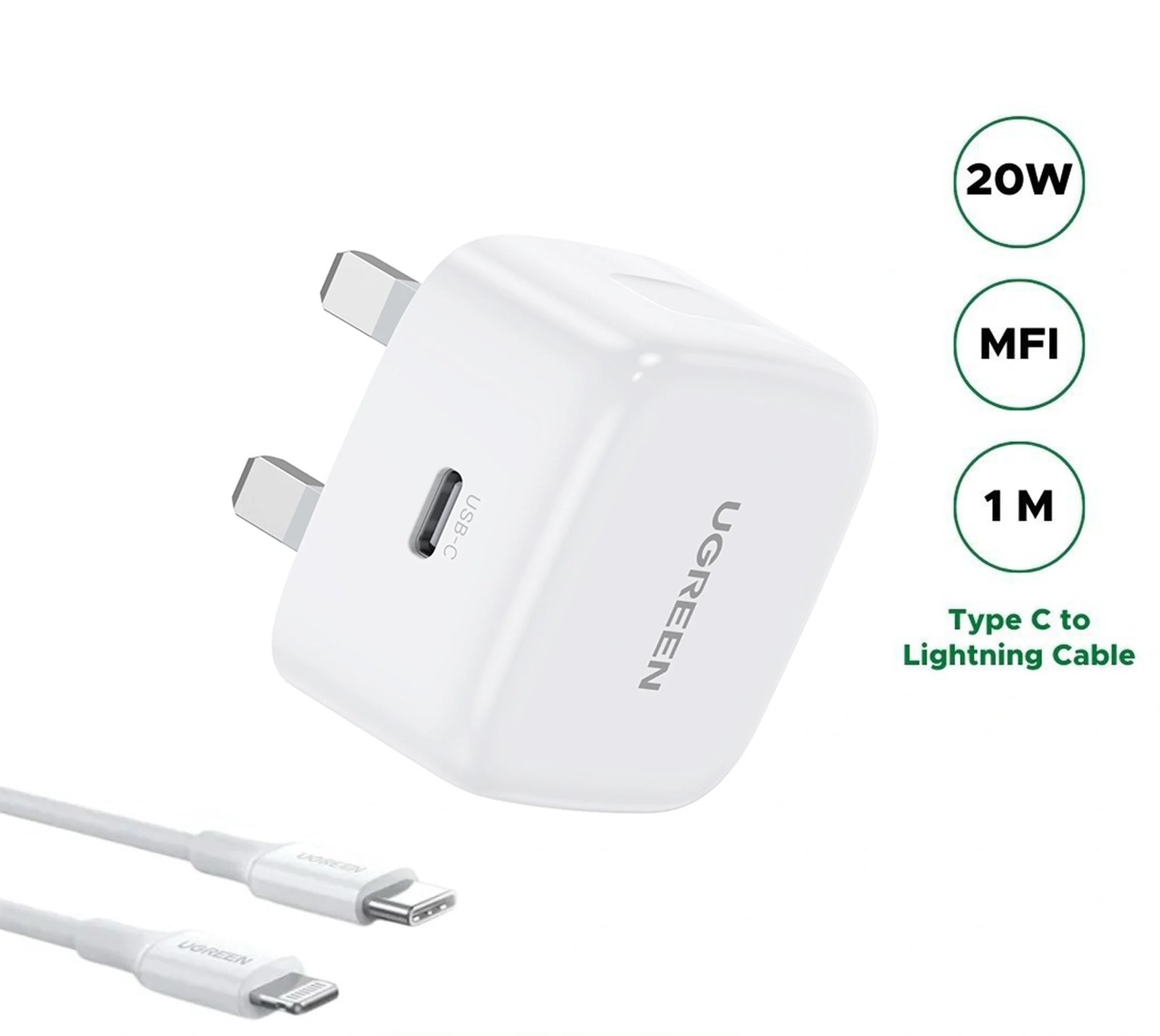 UGREEN 20W Type-C Fast Charger Set with MFi USB-C to Lightning 1M Cable – CD137-70297 – 1 Year Warranty